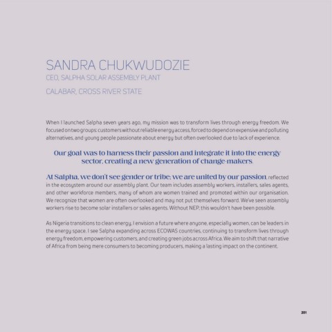 the energy space. I see Salpha expanding across ECOWAS countries, continuing to transform lives through