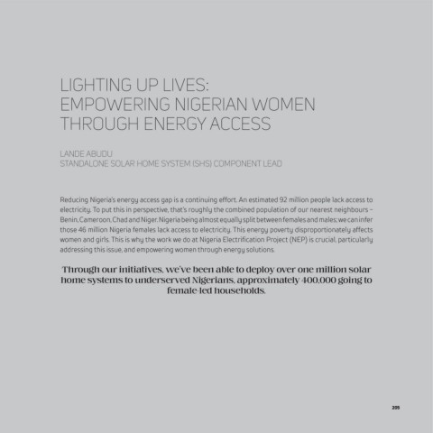 women and girls. This is why the work we do at Nigeria Electrification Project (NEP) is crucial, particularly