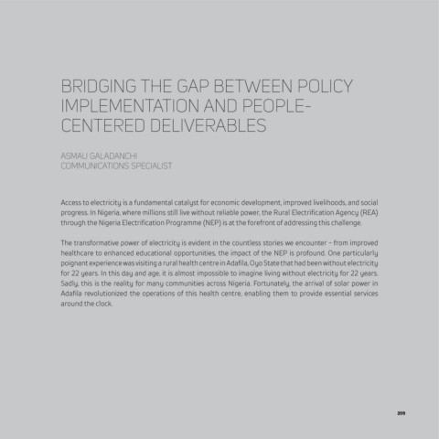 progress. In Nigeria, where millions still live without reliable power, the Rural Electrification Agency (REA)