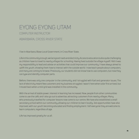 lack of electricity meant few customers and my business struggled. I wasn’t here when solar first arrived, but