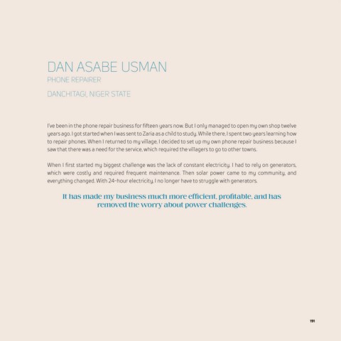 to repair phones. When I returned to my village, I decided to set up my own phone repair business because I